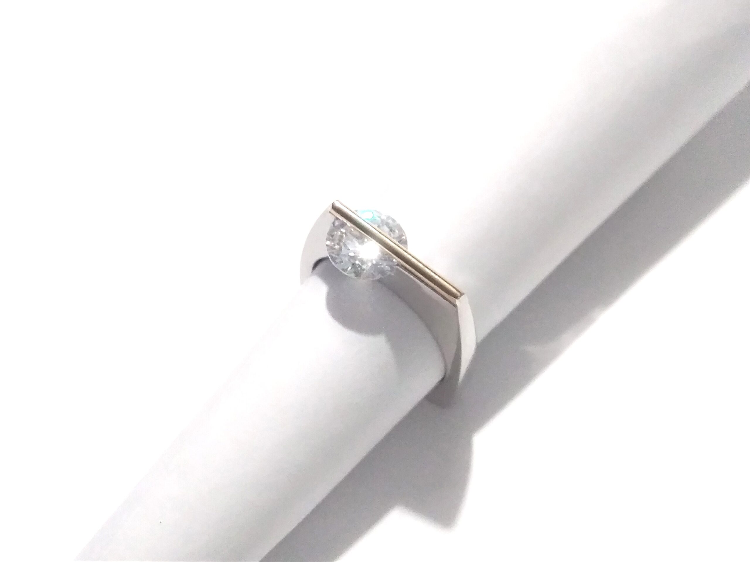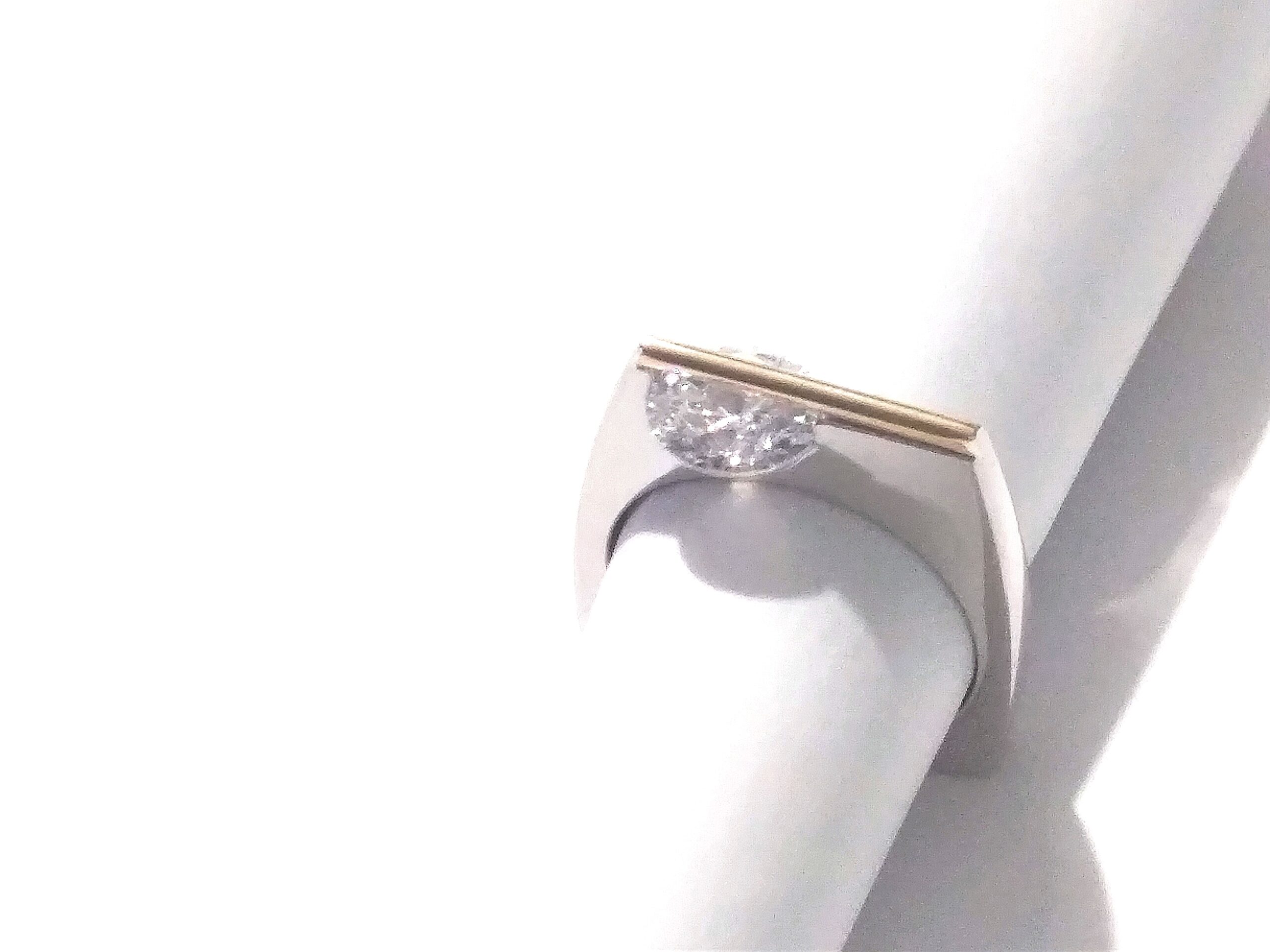 ANILLO DE PLATA DE LEY Y ORO 9K. EFECTO CUADRADO, CON CIRCONITA GRANDE TAMAÑO Nº 18
