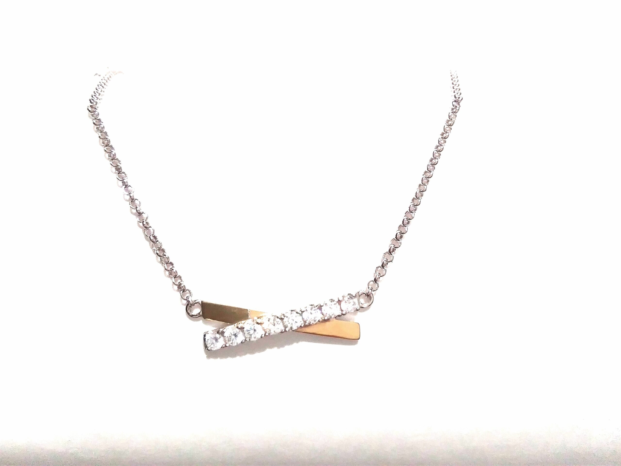 GARGANTILLA DE PLATA DE LEY Y ORO DE 9K. MOTIVO CENTRAL BICOLOR Y CON CIRCONITAS. LARGO GARGANTILLA 40 CM. ANCHO DEL MOTIVO CENTRAL 2,5 CM
