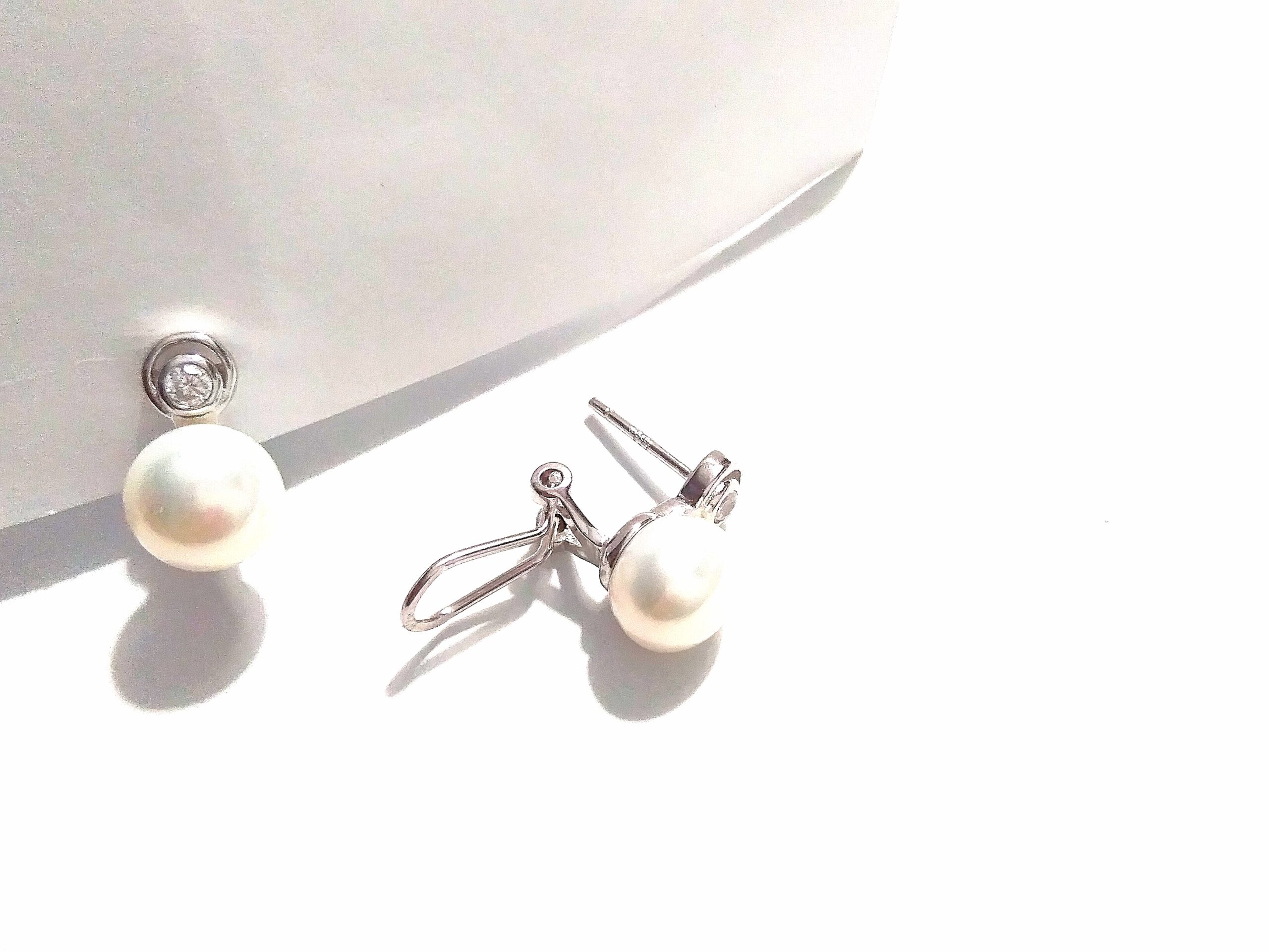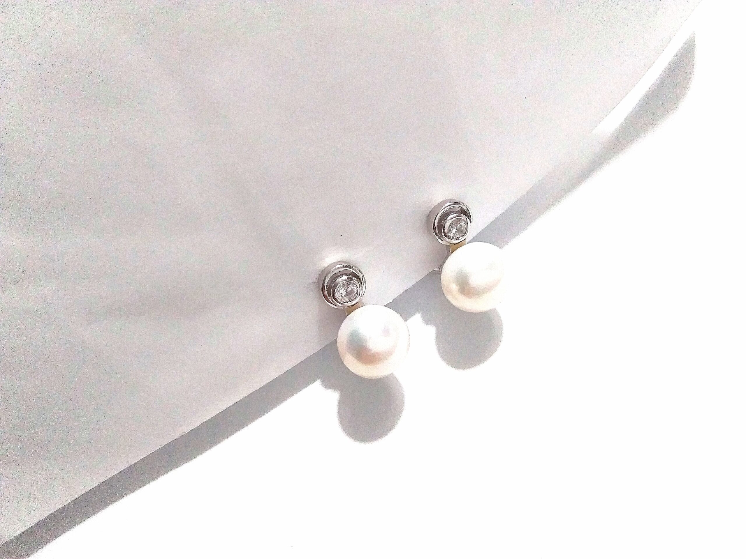 PENDIENTES PLATA DE LEY CON PERLA Y CIRCONITA. CIERRE OMEGA