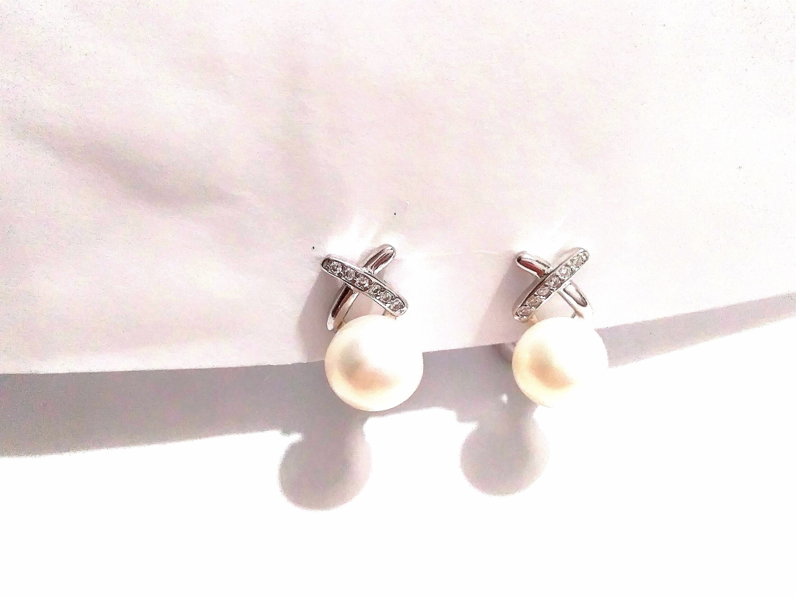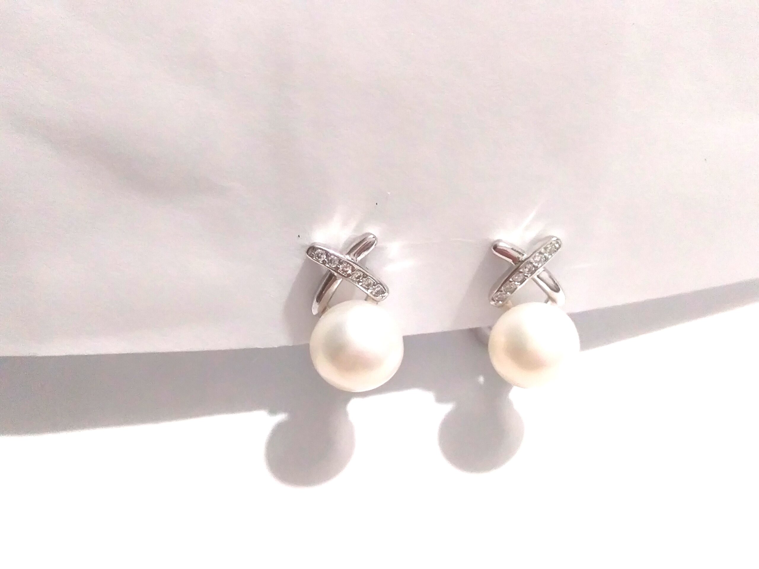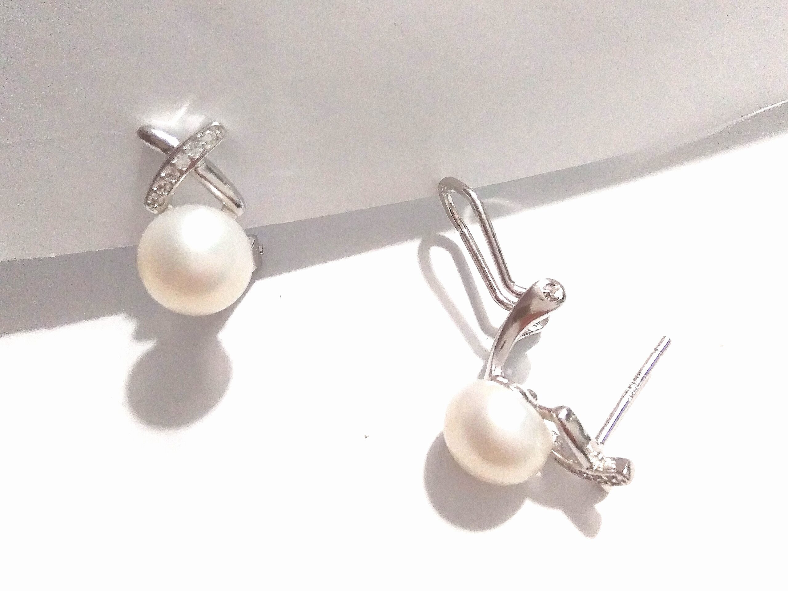 PENDIENTES DE PLATA DE LEY CON PERLA Y ASPA CON CIRCONITAS. CIERRRE DE OMEGA