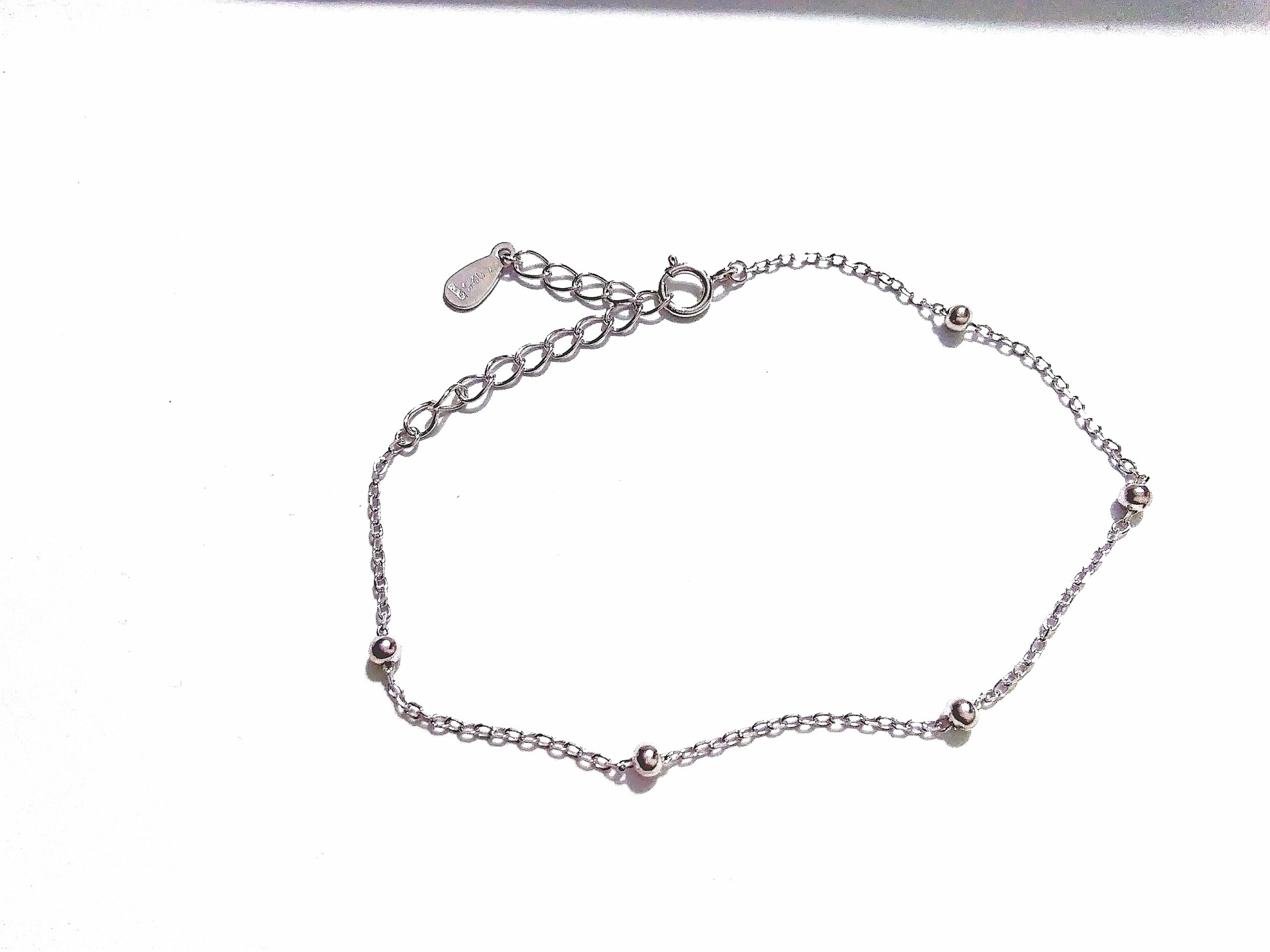 PULSERA PLATA DE LEY CON 5 BOLITAS DE PLATA. LARGO 15-19 CM